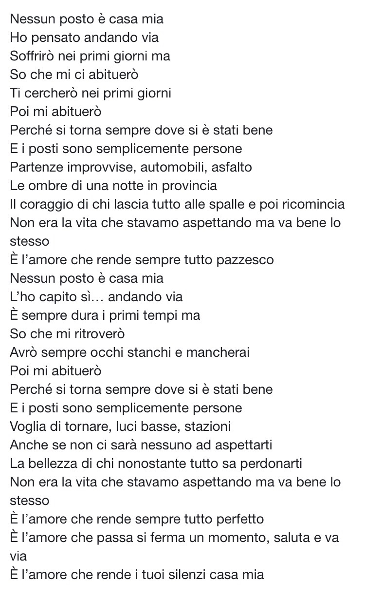 Quel posto che un tempo temevo così tanto, e che riuscì a diventare casa mia. Ma come la canzone cita, nessun posto é casa mia. I posti sono semplicemente persone.